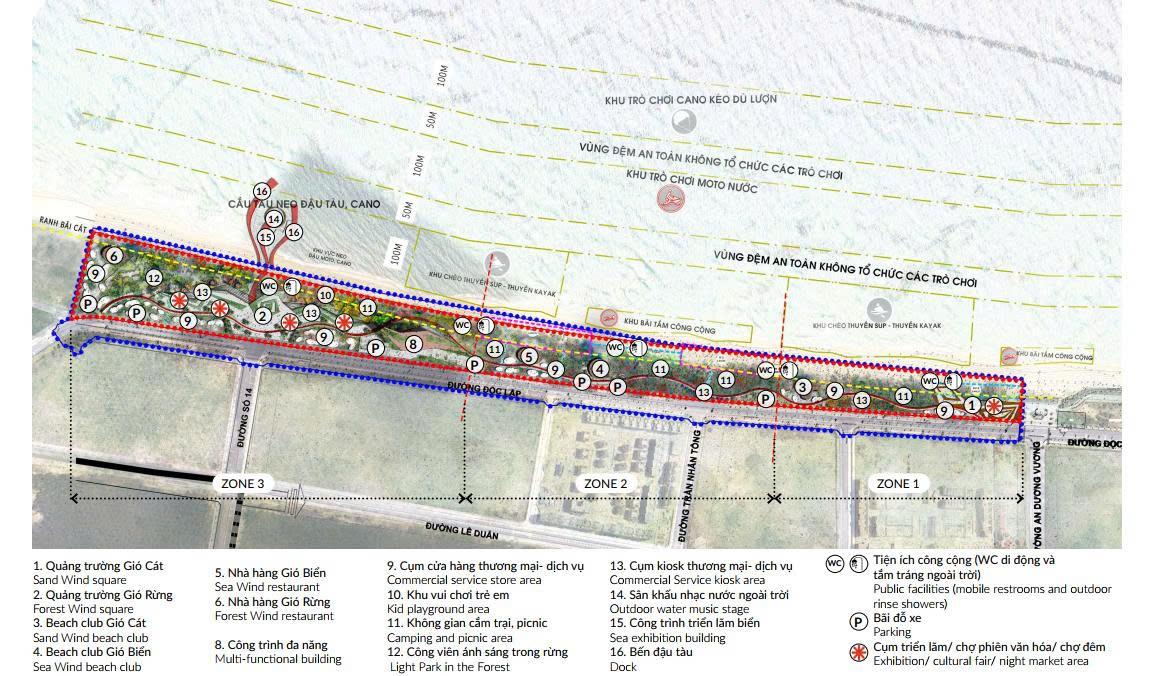 Thứ hai là quy hoạch và concept sản phẩm. Dự án được phát triển theo mô hình tổ hợp nghỉ dưỡng – giải trí – lưu trú với mật độ xây dựng thấp (~32–35%), ưu tiên không gian mở và trải nghiệm . Đây là hướng đi đúng với xu thế hiện nay: khách du lịch không chỉ cần chỗ ở, mà cần trải nghiệm tổng thể. Những dự án có hệ sinh thái tiện ích đầy đủ thường có tỷ lệ lấp đầy cao hơn, đồng nghĩa với dòng tiền tốt hơn cho nhà đầu tư.